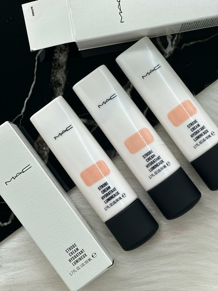 MAC Strobe Cream hafif tonlu, nemlendirici ve cilt tonunu eşitleyen BB kremdir. Beyaz tüpte, şeftali renkli etiket ve siyah kapak bulunur.