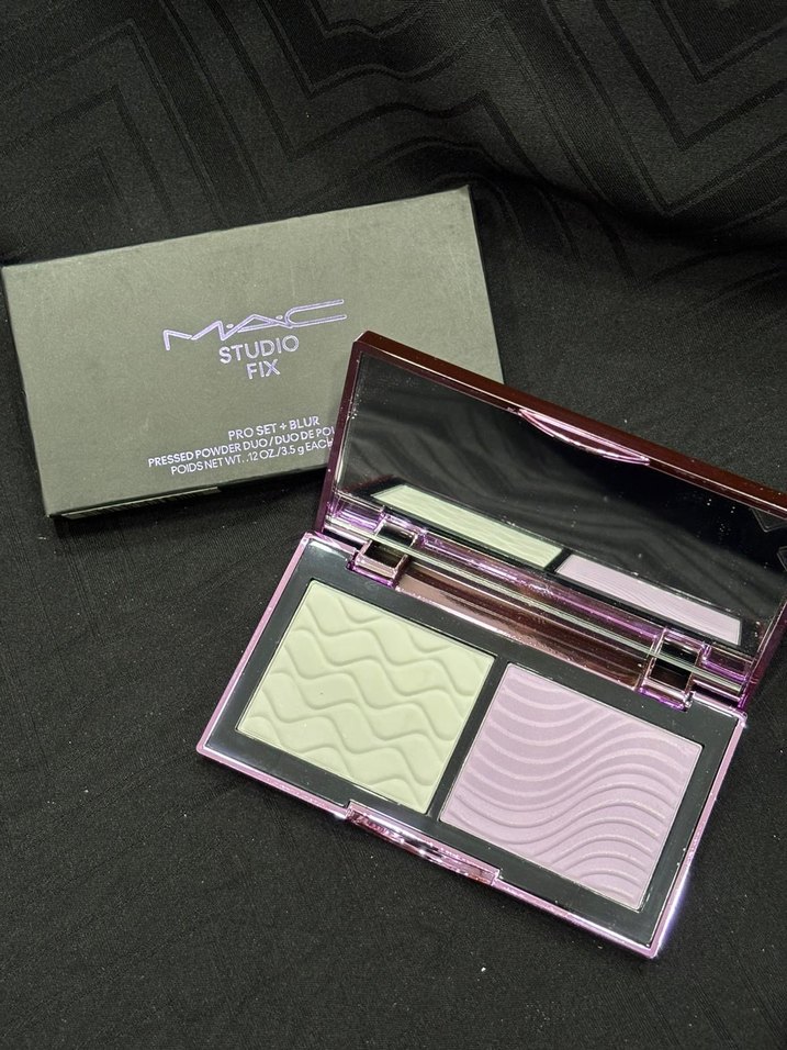 MAC Studio Fix hafif khaki tonlarında kapatıcı ve aydınlatıcı ikilisi. Kompakt içinde ayna ve pürüzsüz uygulama için preslenmiş pudra bulunur.
