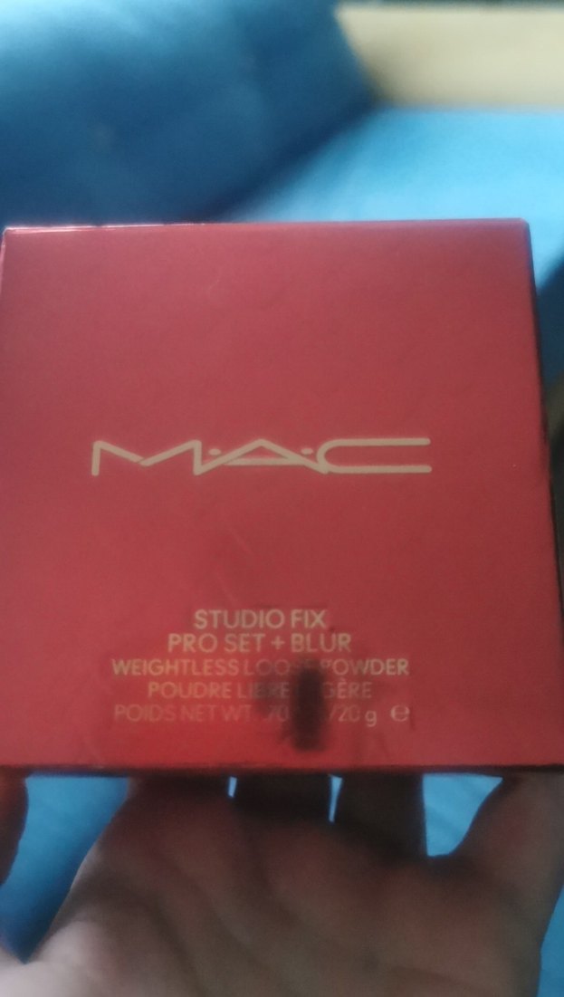 MAC Studio Fix parlak kırmızı kompakt pudra. Hafif yapılı ve bulanıklaştırıcı etkiye sahip. Ürün PRO SET + BLUR olarak etiketlenmiş ve 12 g ağırlığında. Sıfır ürğn