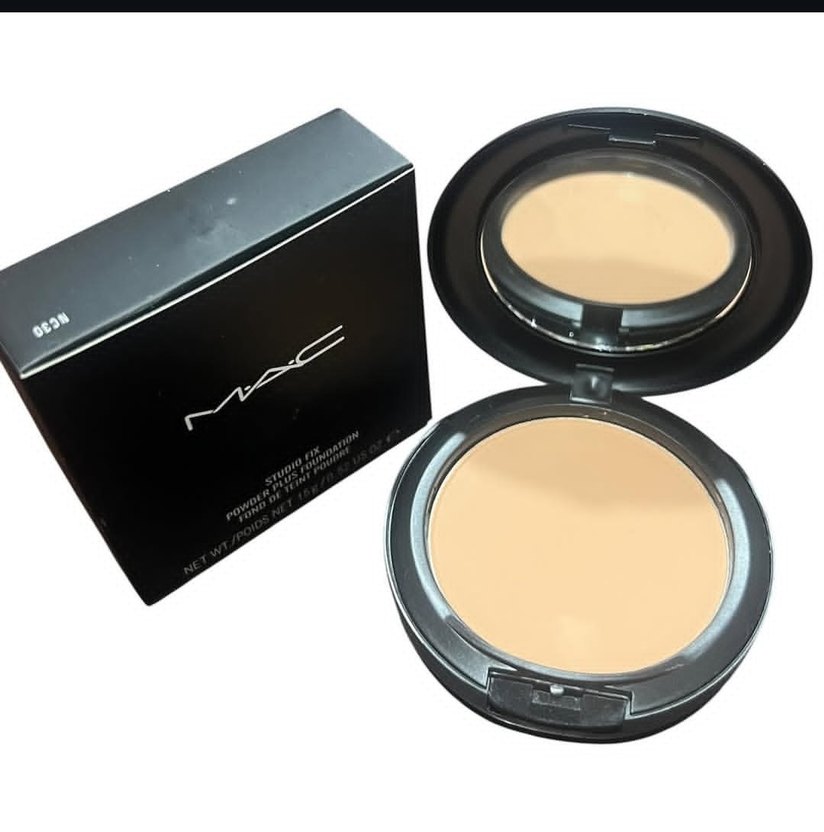 MAC Studio Fix pudra koyu bej tonunda, doğal bitişli pürüzsüz kapatıcılık sağlar. Aynalı kompakt kutuda sunulur.