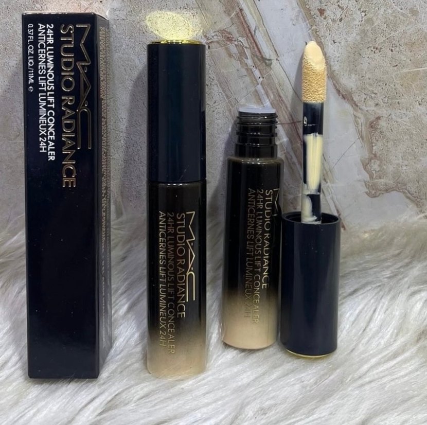 MAC Studio Radiance kapatıcı ve aydınlatıcı, altın tonunda, cildi aydınlatır ve kusurları gizler. Pürüzsüz aplikatörle kolay kullanım sağlar. ✨