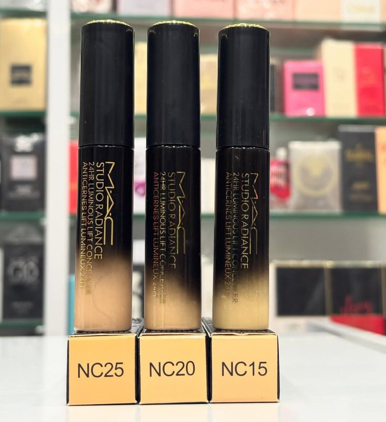 MAC Studio Radiance kapatıcı ve aydınlatıcı, koyu altın tonlarında, NC15, NC20 ve NC25 renk seçenekleriyle parıltılı bir görünüm sunar. ✨Adet Fiyatı Ürünlerimiz 1 kalitedir