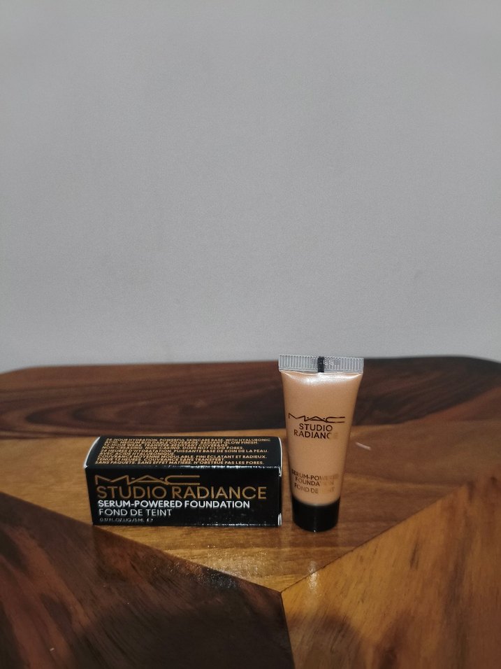 Bej renkli MAC Studio Radiance serum içerikli fondöten, parlak bitiş ve pürüzsüz kapatıcılık sağlar. Küçük tüp ve kutu ile gelir. NC30 rengi 5ml
