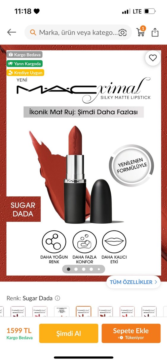 MAC Sugar Dada Silky Matte Ruj, indirim döneminde 2 tane almışım farklı renk aldığımı düşünürek iadeyle uğraşmak istemediğim için bir tanesini buraya ekliyorum ürün sıfır trendyol orjinal mac mağazasından aldım.