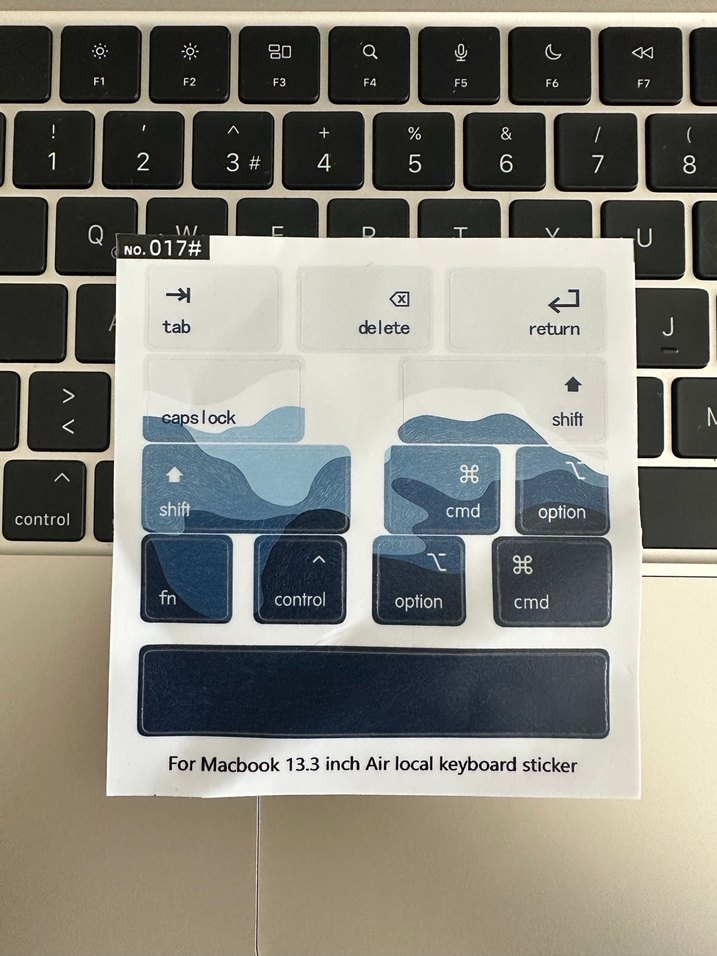 Macbook 13.3" Air için tab, option, return, control gibi tuşları içeren koyu mavi yerel klavye stickerı. ️