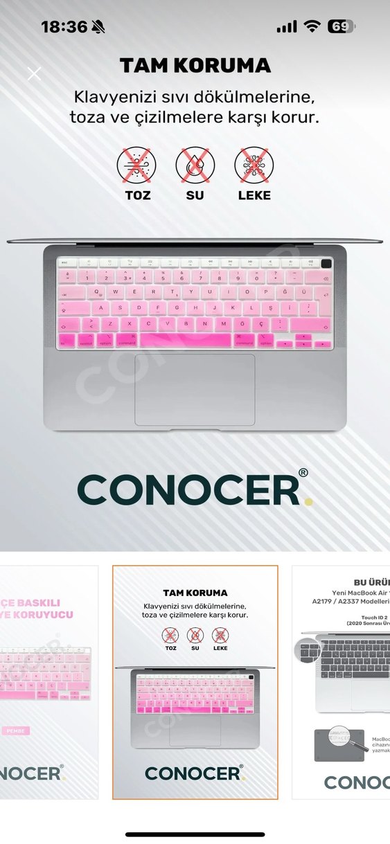 Macbook Air 2020 13 Inc M1 A2337 / A2179 Uyumlu Türkçe Q Klavye Slim Klavye Koruyucu, ürün sıfır