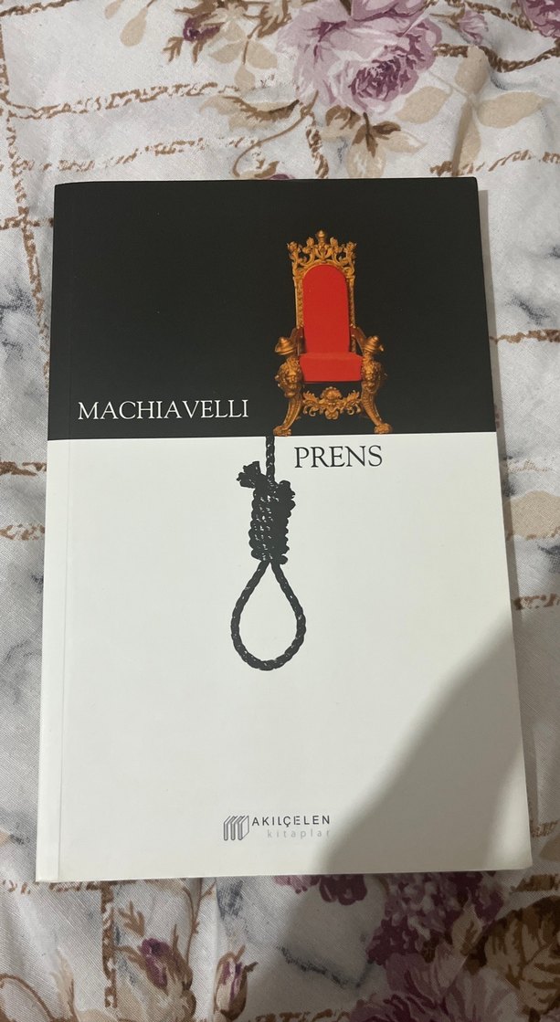 Machiavelli'nin "Prens" kitabı, taht ve idam ipi görseliyle güç ve sonuçları simgeliyor. Akılçelen yayınevi.