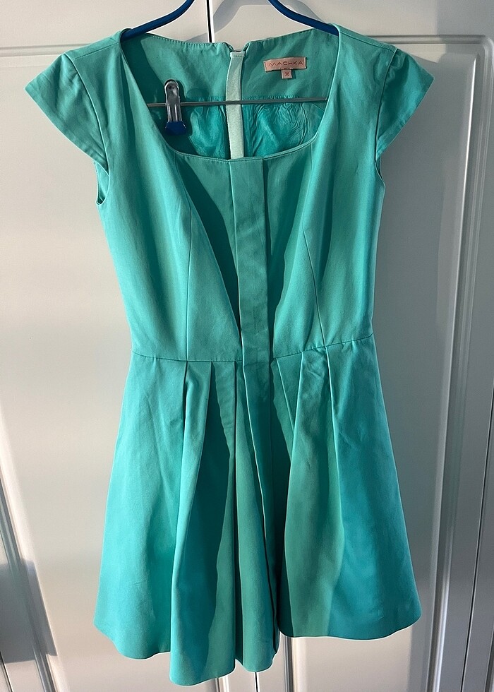 Sadece 1 kez mezuniyetimde giydim. Kısa elbise, üst kısmı biraz dar.