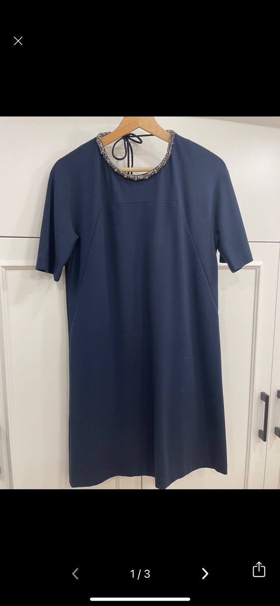 Machka 34-36 beden uyumlu Lacivert renkte, kristal taş detaylı yuvarlak yakalı kısa kollu elbise. Diz boyu, parlak sentetik kumaştan, ofis kullanımı için uygun. Etiketini göründüğü için kesmiştim. Yepyenidir. #machka #machkaelbise