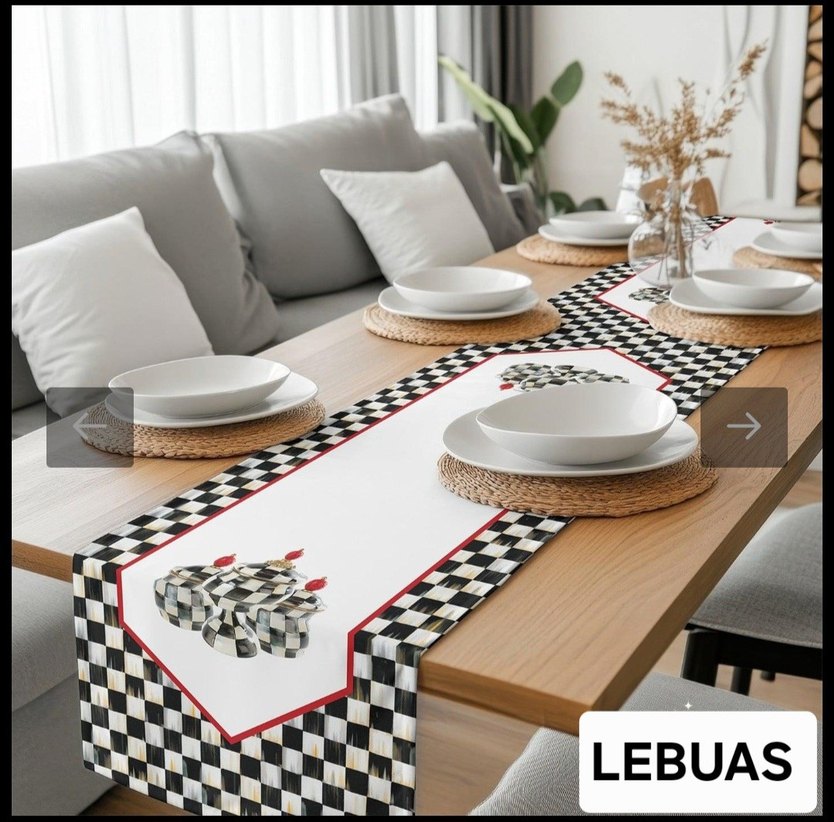 Gri ve beyaz dama desenli, modern tasarımlı masa örtüsü. Şık ve dekoratif bir görünüm sunar. ️140x40cm
