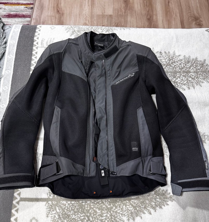Çıkartılabilir sırt ve dirsek koruması var. Çıkartılabilir içeriden fermuarlı yağmurluklu. Siyah kısımlar fileli. Gri kısımlar Işık, far tutulduğunda reflektör görevi görür. Yırtığı defosu yok. Az giyildi