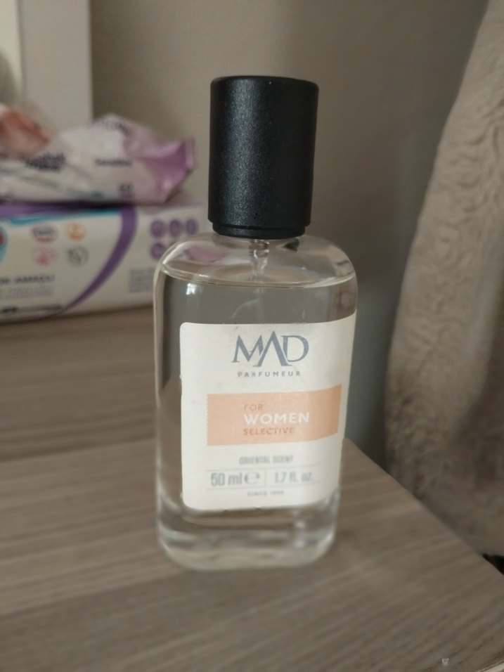 MAD Parfüm, kadınlar için 50 ml şeffaf şişede, siyah kapaklıdır. Seçici kokusu ile dikkat çeker. z101 koduu