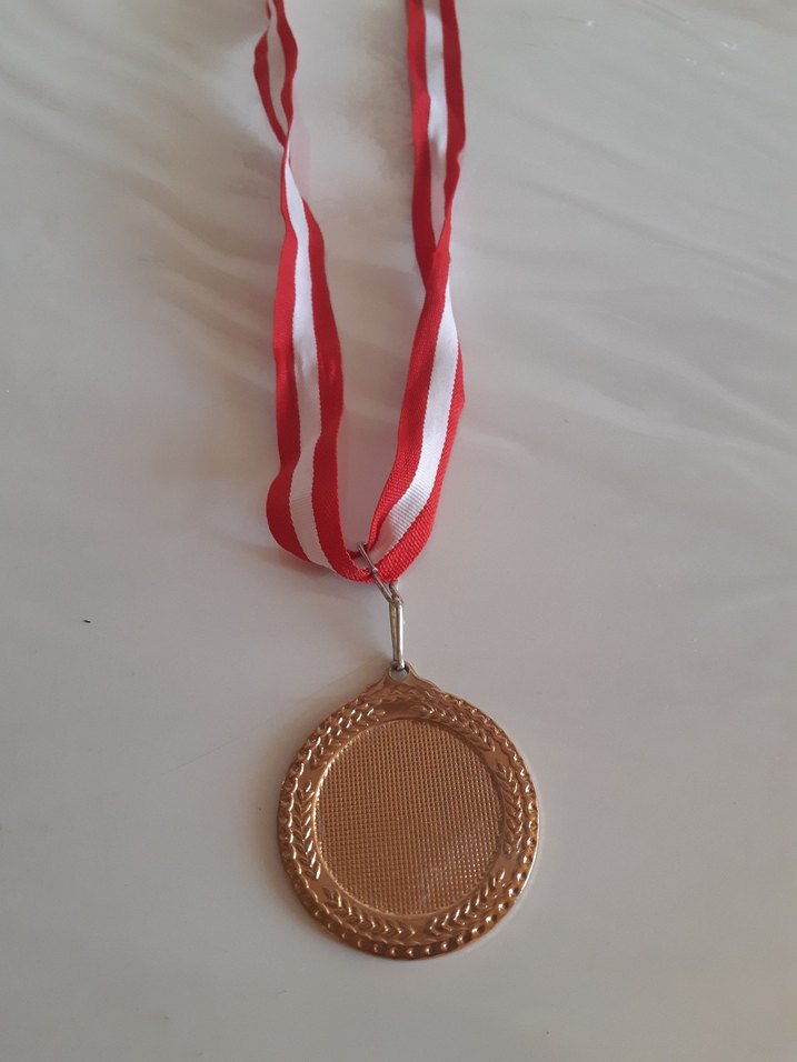 hediyelik madalya Parlak altın renkte sade ve klasik tasarımlı rozet. Kırmızı beyaz şeritli kurdele ile minimal tarzı yansıtır.