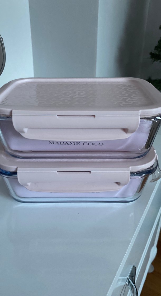 Madame Coco marka, pastel beyaz kapaklı, sağlam camdan yapılmış iki adet saklama kapları seti. Gıda saklamak için uygundur.