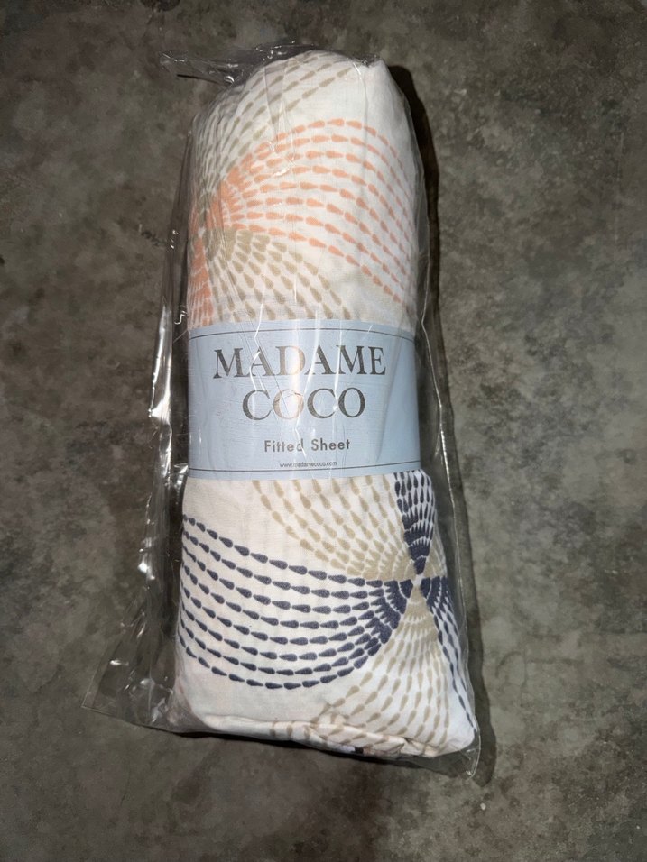 Madame Coco markalı, gri ve çok renkli batik desenli lastikli çarşaf, yumuşak ve şık bir tasarıma sahiptir. ️