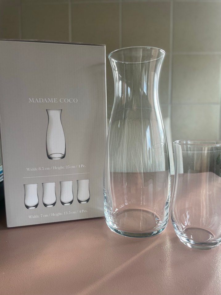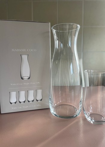 Madame Coco Diamanta 5’li Set. 4 adet bardak- 1 adet sürahi içerir. Yeni, etiketli ve kutuludur.