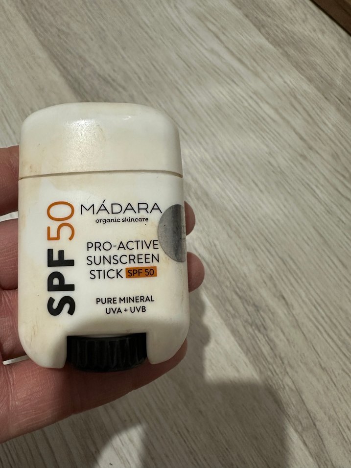 Madara Pro-Active SPF50 mineral güneş koruyucu stick, geniş UVA ve UVB koruması sağlar. Organik formüle sahip, kompakt ve kolay uygulanır. Az kullanıldı.