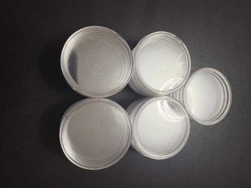 Dayanıklı malzemeden yapılmış yuvarlak beyaz madeni para kapsülleri