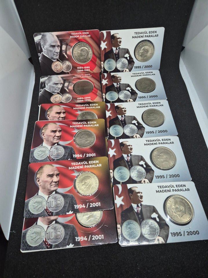 1984-2001 yılları arasında tedavülde olan madeni paralardan oluşan set. Atatürk görselli kartlarda farklı değerlerde altın ve gümüş tonlarında madeni paralar içerir. Tamamının fiyatıdır