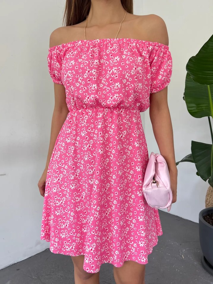 Diğer Madonna Yaka Çiçek Desenli Elbise | Gardrops