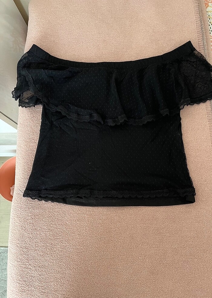 Siyah h&m madonna yaka fırfırlı bluz - temiz