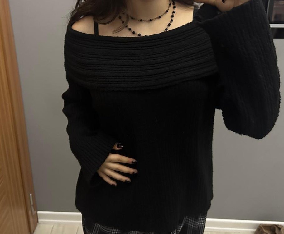 Madonna yaka siyah kazak omuzu açık cok az giydim sorunsuz oversize giymedigim icin satiyorum bi defosu yok yani sorunuz olursa sorabilirsiniiiz fiyat son