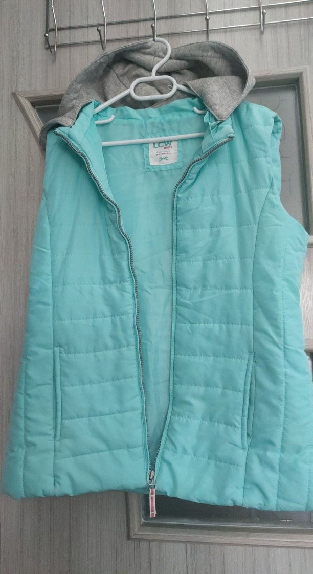 Turkuaz renkli, fermuarlı ve kolsuz kız çocuk yeleği. İnce kesimli, kapşonlu kapsonu cikarilabiliyor yakalı ve sokak stiline uygun rahat bir tasarıma sahip.