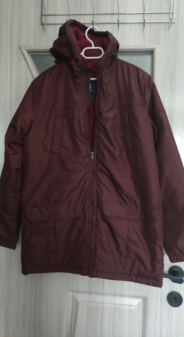 Bordo renkli, fermuarlı, kışlık mont Notch yaka ve uzun kollu, rahat kesim. Sıcak ve konforlu içi polarlı kumaştan, günlük sokak stiline uygun. ❄️