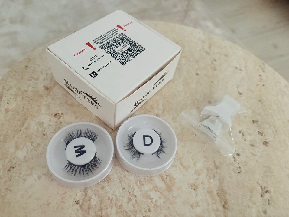 Magic eyes markasına ait 2 Çift takma kirpik. W Olan wispy model, D olan Natural modeldir. İkisi de doğal duruyor . Wispy rimelli bir görüntü veriyor. Yanında takma aparatı da mevcuttur. Tak çıkar kullanımı kolaydır. Yapıştırıcıya vs gerek yok. Hiçbir sorunları yoktur. Mıknatıslı kirpiğe alışkın olmadığım için satıyorum. Ayrı ayrı da satabilirim