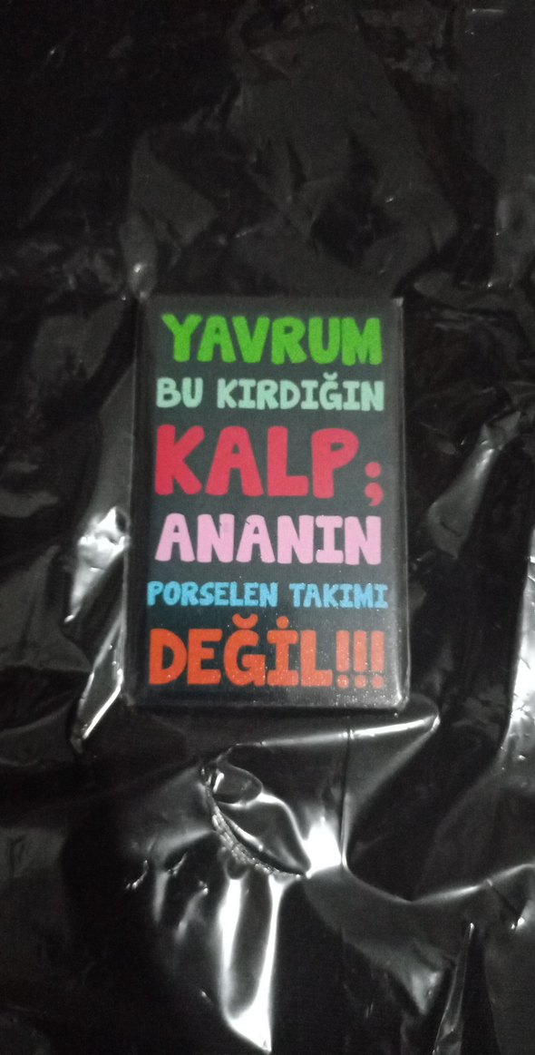 Renkli yazılı esprili Türkçe cümle içeren siyah magnet. Canlı tasarımlı ve kompakt yapıda.