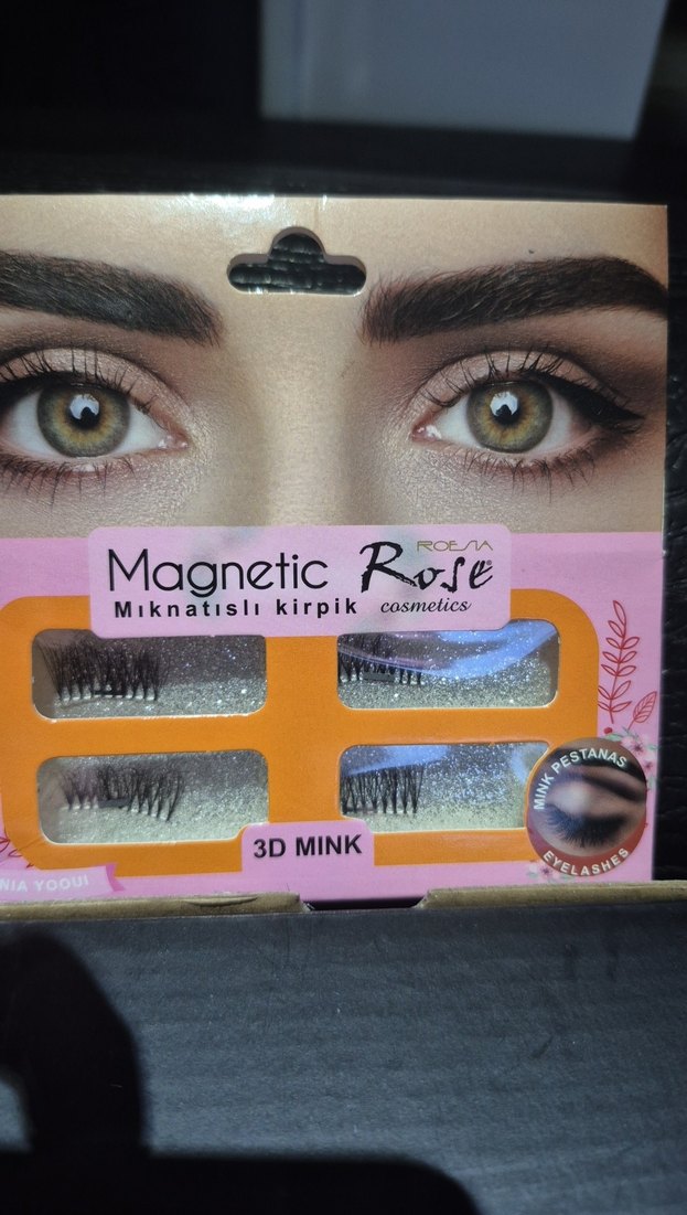 Magnetic Rose 3D Mink manyetik kirpikler, koyu bej renkte, kolay kullanım için manyetik yapıya sahiptir. Göz görünümünü doğal şekilde güçlendirir. ✨