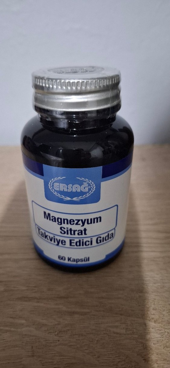 ERSAG markalı, 60 kapsüllü magnezyum sitrat takviye edici gıda. Beslenme desteği sağlar.