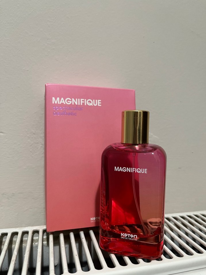 100 ml şişede, pembe tonlarda ve altın kapaklı Magnifique kadın parfümü. Ferah ve zarif bir koku sunar. Koton hiç kullanılmadı