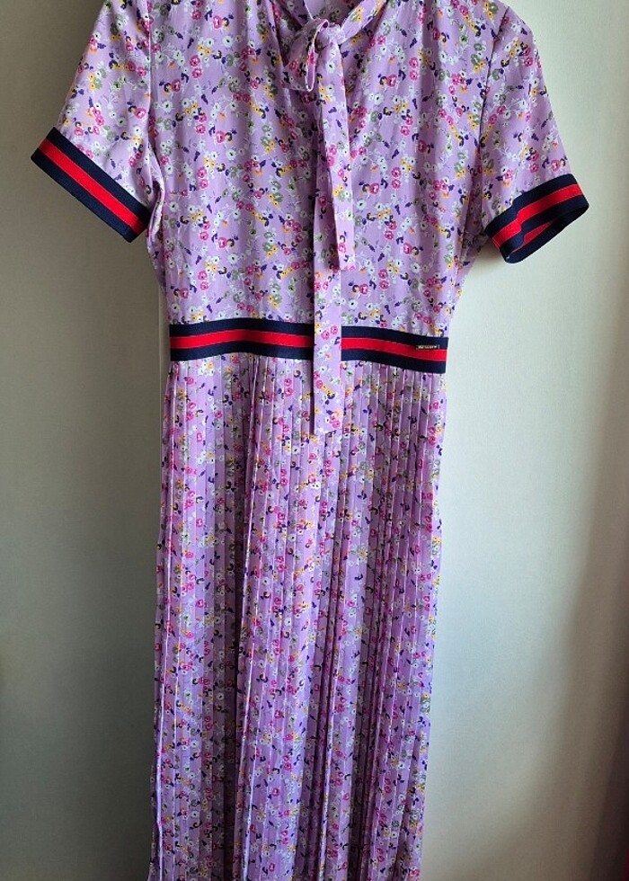 Magro 38 Beden Lila Çiçekli Elbise hic giyilmedi. boy 117 cm iki koltuk arasi 47 cm