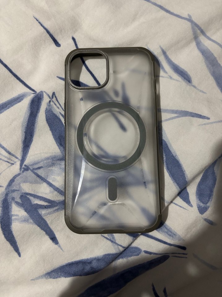 Telefonunuzu koruyan gri şeffaf, counterculture tarzı telefon kılıfı.