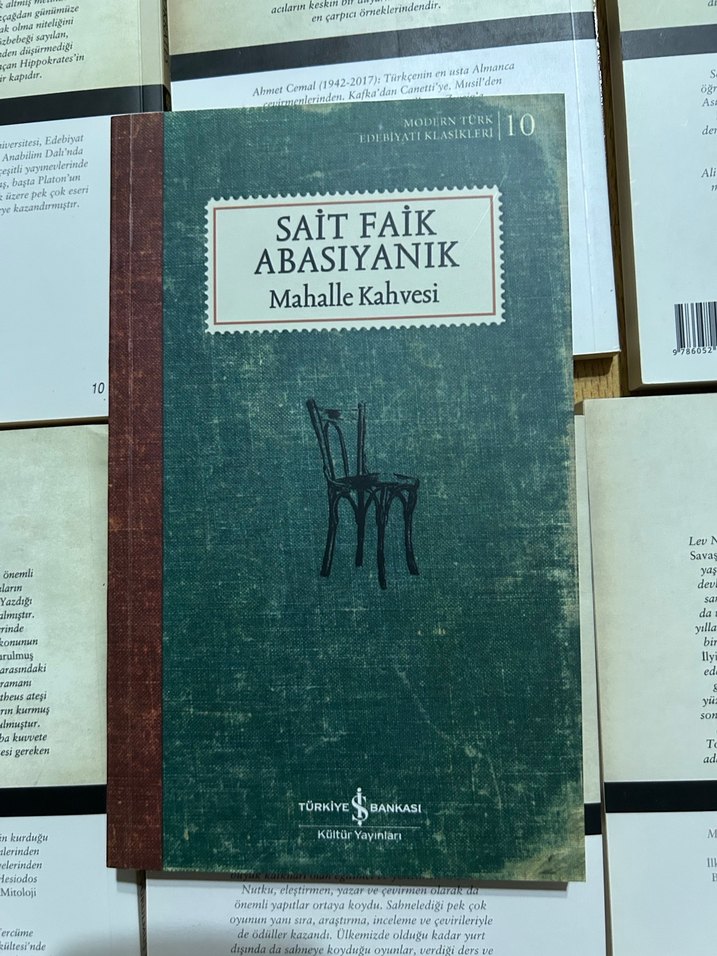 Sait Faik Abasıyanık'ın 'Mahalle Kahvesi' adlı romanı, üzerinde sandalye resmi bulunan sade bir kapağa sahiptir. Türkiye İş Bankası Kültür Yayınları tarafından yayımlanmıştır.