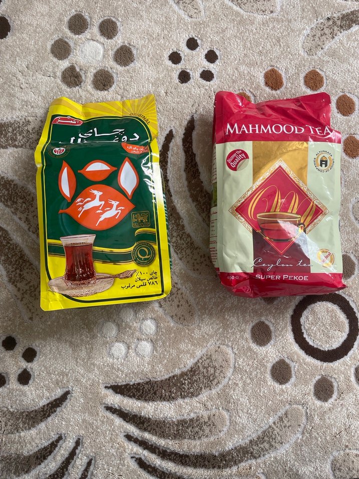 Mahmood Tea ve diğer çay paketi, canlı renkler ve farklı tasarımlarla çay severlere hitap ediyor. 400 gram muhteşem aromasıyla