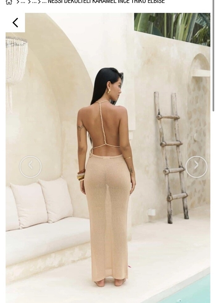 Bej plaj elbisesi hiç giymedim