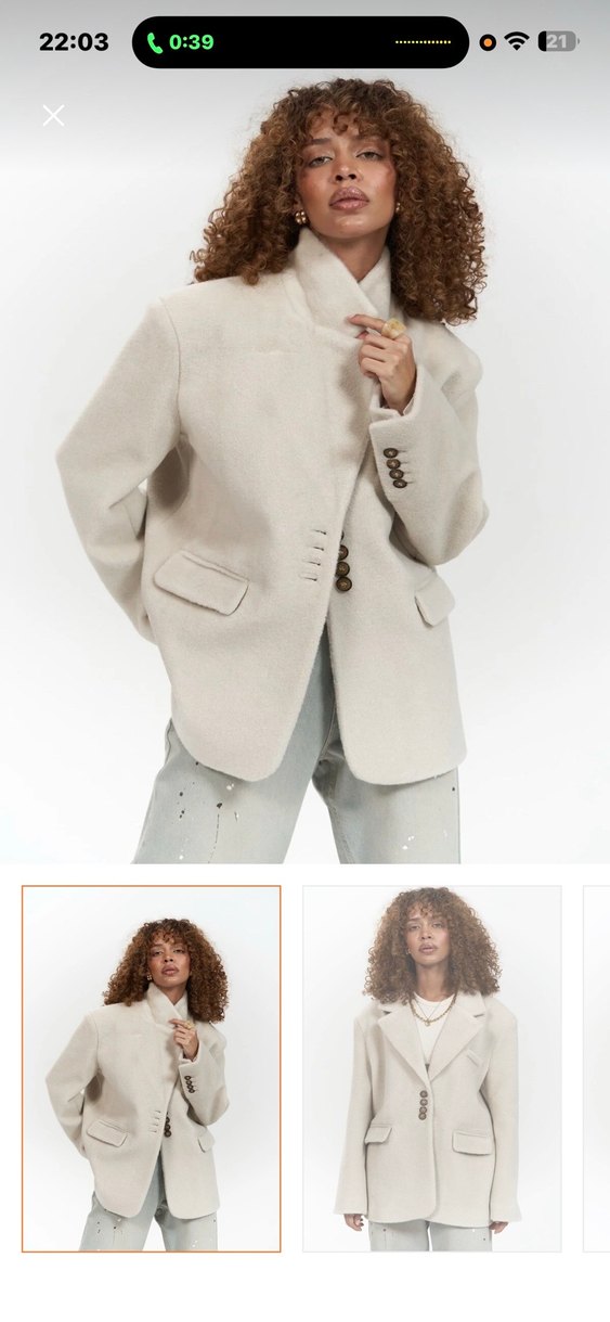 Bej renkli, yün kumaştan üretilmiş, uzun kollu kadın blazer. Normal kesim ve midi boyda, düğmeli ve cep detaylıdır, günlük sokak stiline uygundur.