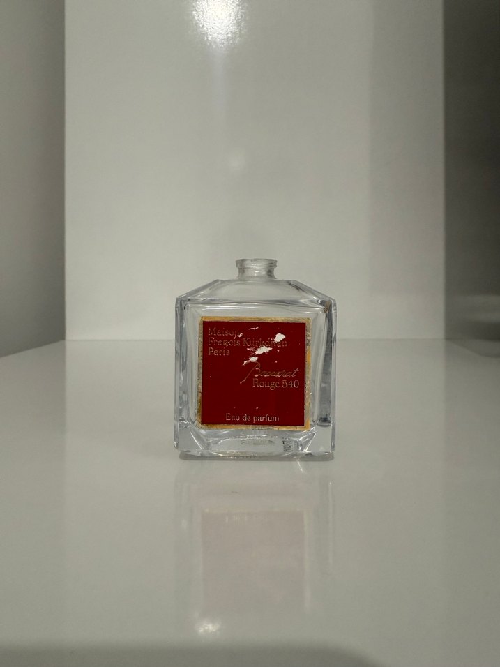 Maison Francis Kurkdijan Baccarat Rouge 540 boş şişe. Kullanım esnasında sprey kısmı bozulduğu için spreysiz şekilde satılmaktadır. Kullanım dolayısıyla şişe üzerinde ufak tefek deformeler mevcuttur. Batch kodu sorgulaması görseller arasında yer almaktadır. Görsellerde gözükmemesi durumunda orijinalliği sorgulanması adına Batch kodu 22049'dur.