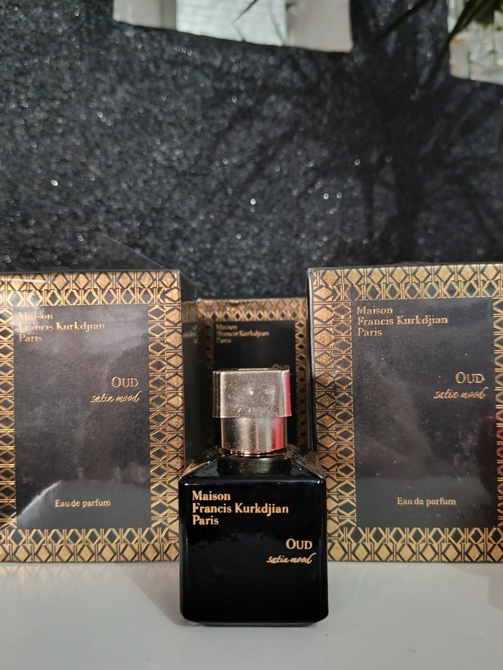 Maison Francis Kurkdjian Oud Eau de Parfum, siyah şişede ve altın detaylarla sunulur. Kadınlar için zengin ve sıcak bir koku sunar.
