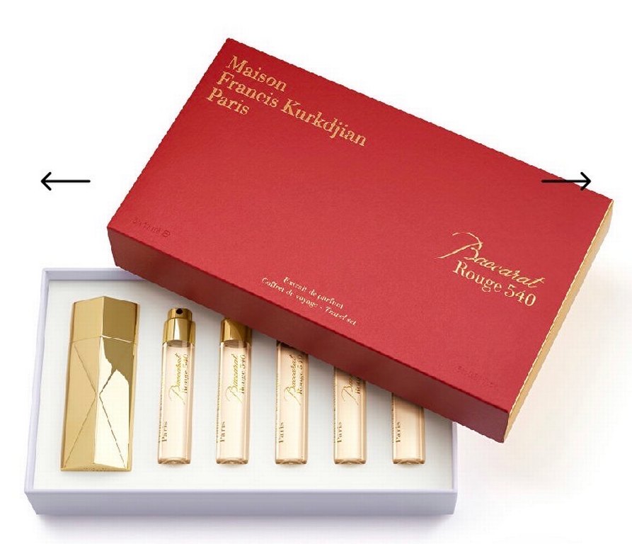 Maison Francis Kurkdjian Rouge kadın parfüm seti, kırmızı kutuda çeşitli küçük parfüm şişeleri içerir. Paris markasının farklı kokularını sunar.