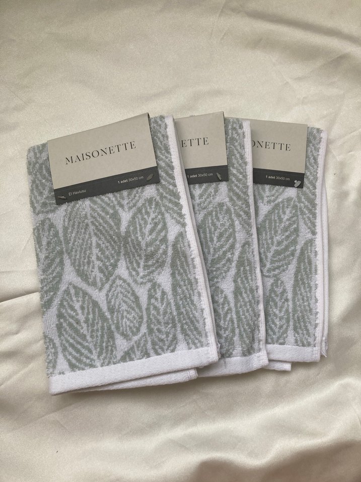 Gri yaprak desenli, modern klasik tarzda yumuşak ve emici Maisonette havlu seti.