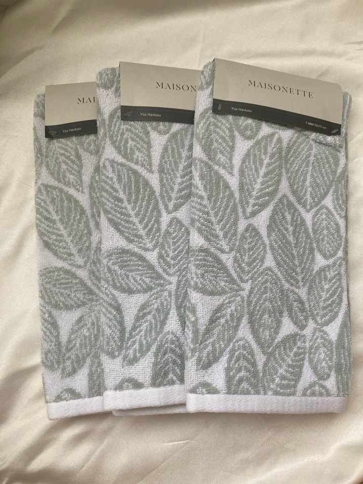 Maisonette marka, çağdaş yaprak desenli gri havlu seti, yumuşak ve emici dokusuyla öne çıkar.