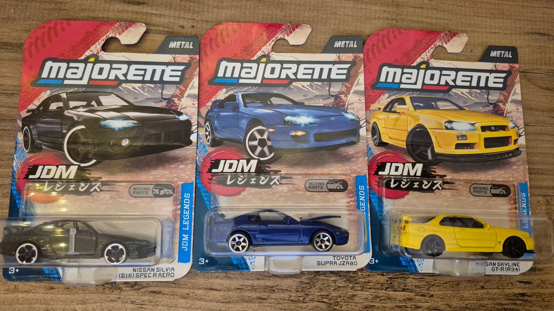Nadir bulunan ve hareketli parçalara sahip Toyota Supra, Nissan GTR R34, Nissan Silvia S15. Özenle kargolanır. #hotwheels #majorette #diecast