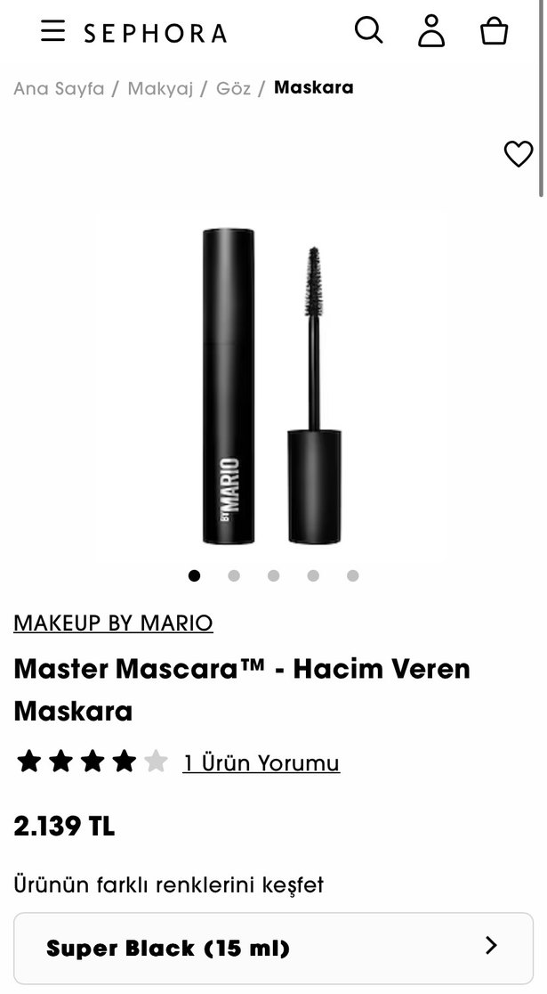 MAKEUP BY MARIO Master Mascara™, siyah renkte hacim vererek kirpikleri belirginleştirir. Fırçası sayesinde eşit uygulama sağlar.