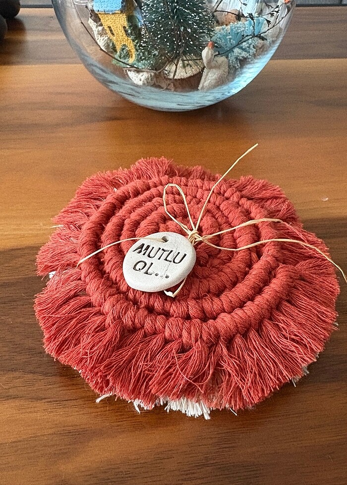 Makrome bardak altı. Kendi el emeğimdir. 2 adet fiyatıdır. Görselden hangi modeli isterseniz yorumlarda belirtebilisiniz.
