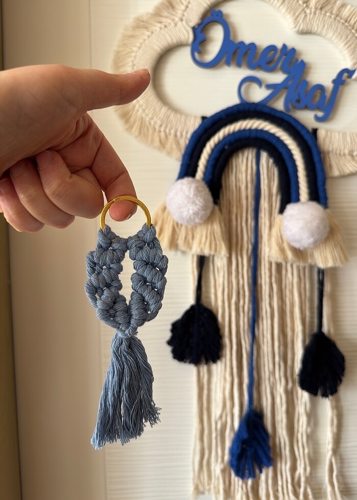 Kişiye özel renklerde makrome kapı süsü ve makrome anahtarlık yapılmaktadır.
