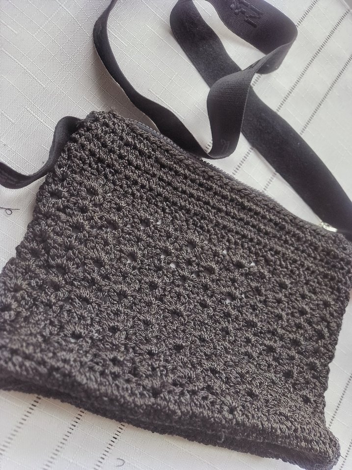 Kadın çantası, örgü gri kumaştan yapılmış sade ve rahat tasarıma sahiptir. Uzun askısıyla günlük kullanıma uygundur.