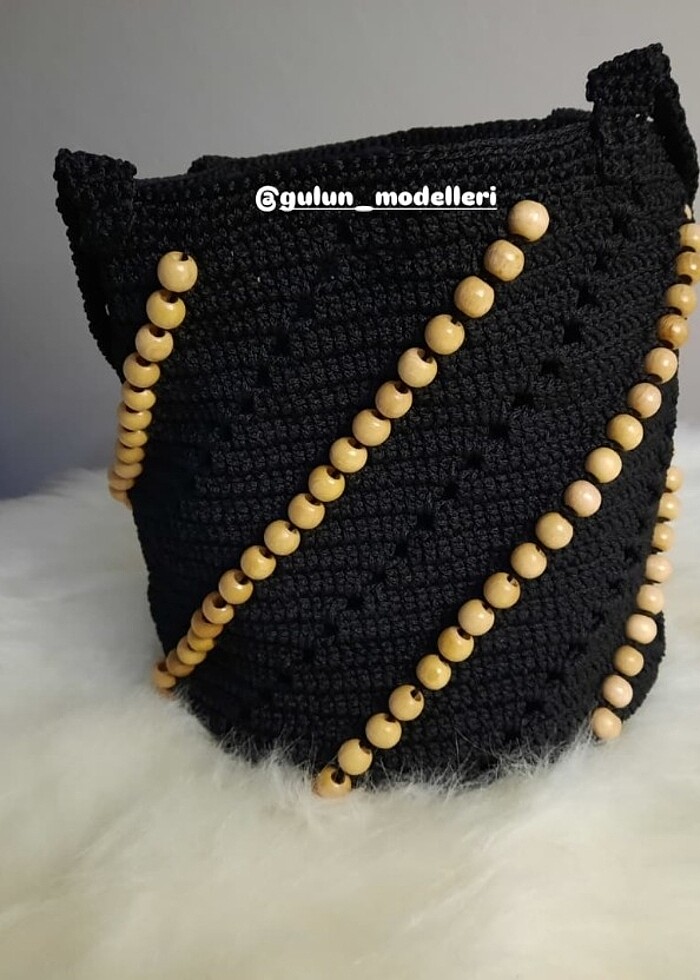 Makrome ip ike boncuklu çanta